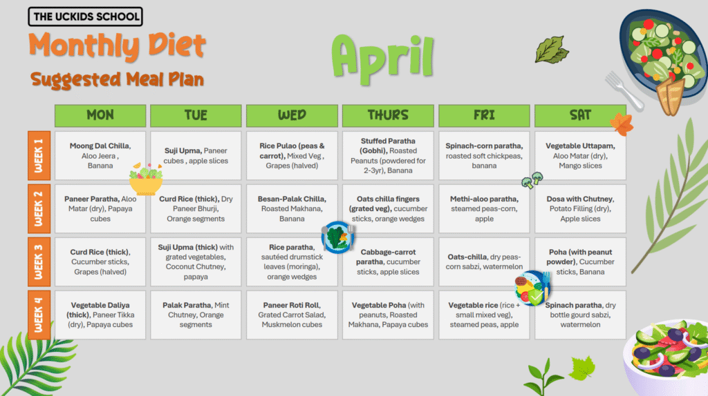 UCkids – Suggested Meal Plan (September Month) August 22, 2025 Rahul Godara Dear Parents, 👨👩👧👦 We’re excited to bring you a September Lunchbox Plan that’s as fun as it is nutritious! This plan transforms traditional, homemade Indian vegetarian lunches into colorful, playful creations that will spark your child’s curiosity and make lunchtime the highlight of their day.